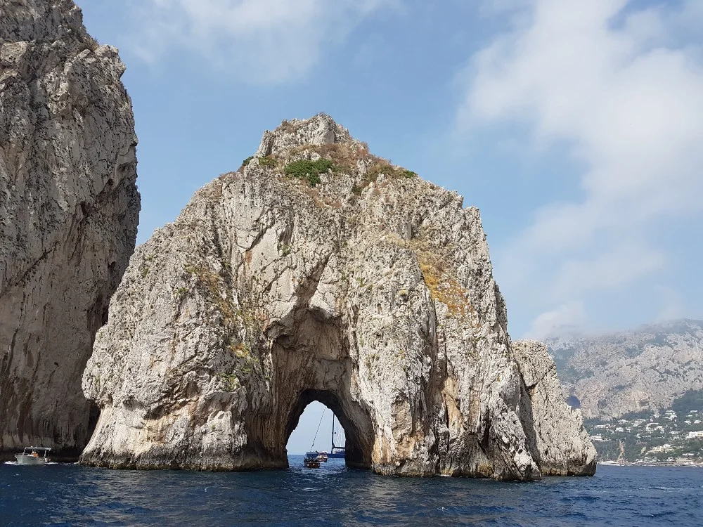Once you land in Capri, I recommend the Capri boat tour, which takes you on a complete circle tour around Capri. It should include sailing through the Faraglioni rock formations (it’s usally extra for the blue grotto). It costs roughly €17 per guest (accurate as of July 2019) and takes 2 hours.